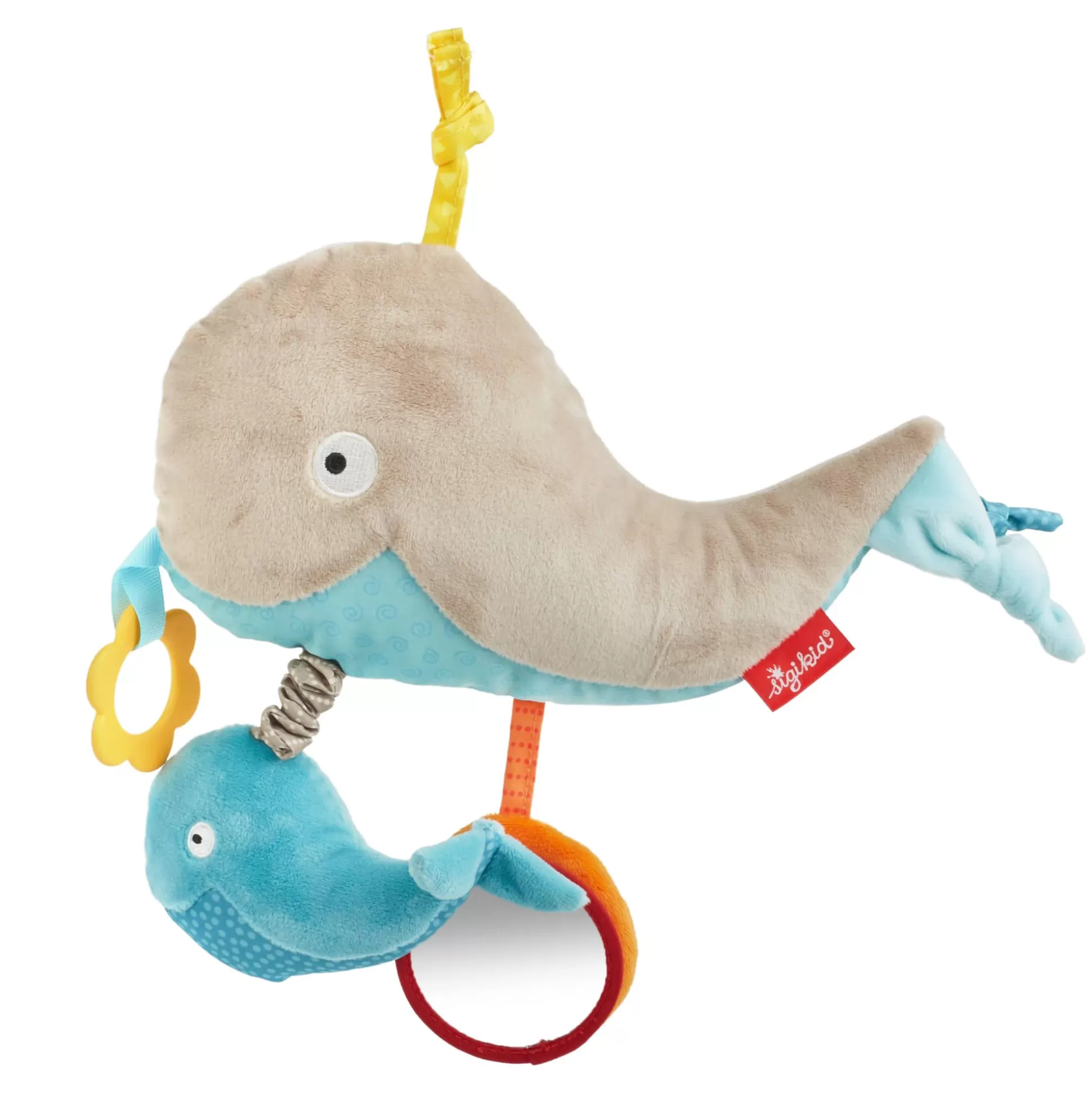 Mit Diesem Freundlichen Wal Im Schlepptau Vergeht Babys Die Zeit Wie Im Flug. So Können Die Kleinen Wahlweise An Dem Kleinen Rassel-Wal Ziehen Und Staunen, Wie Schnell Er Zurück Zu Seiner Mama Vibriert, Sich Im Folienspiegel Entdecken Oder Nach Herzenslust Auf Dem Beißring Herumkauen. Mit Praktischen Bändchen Zum Anbinden.