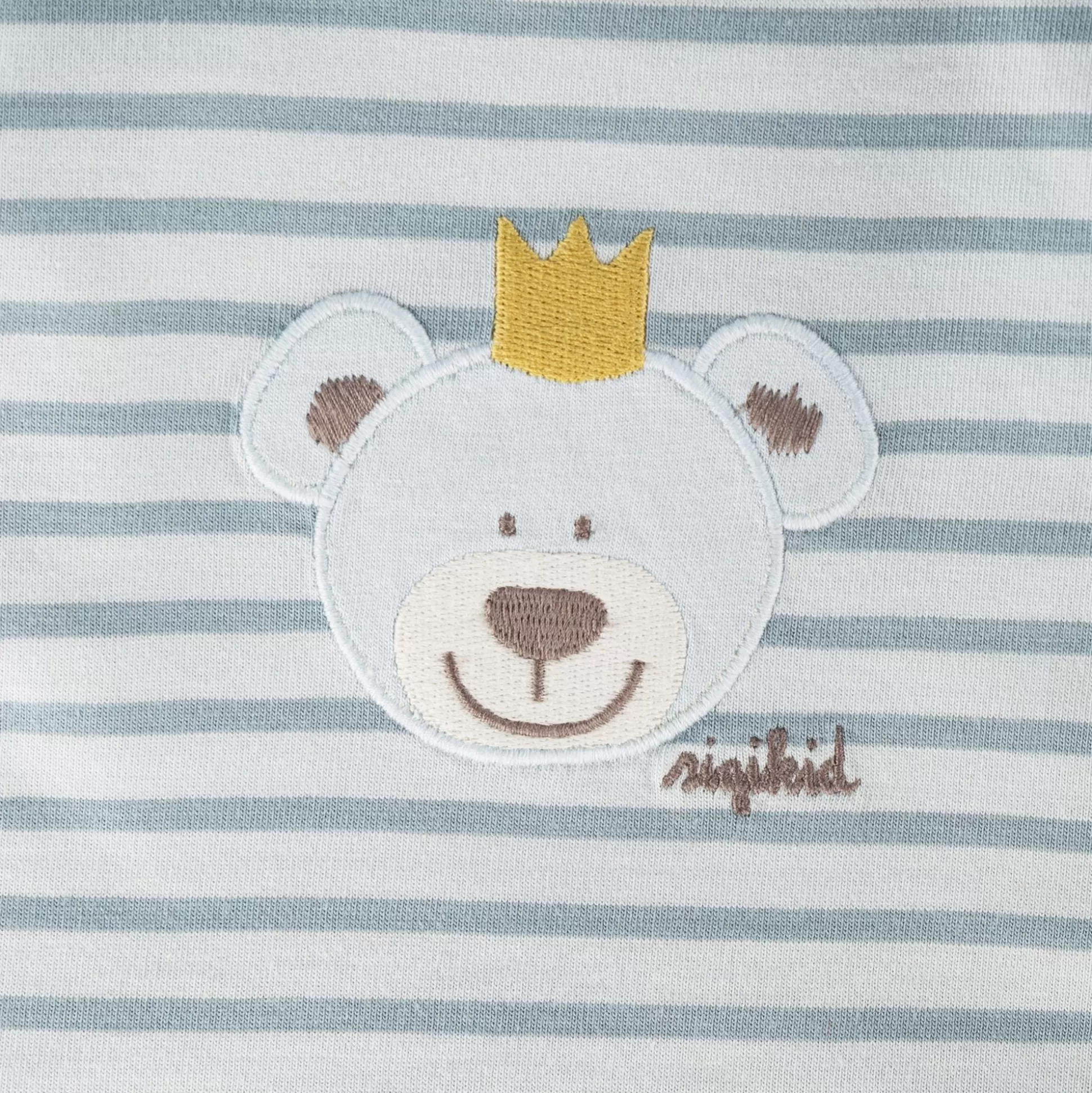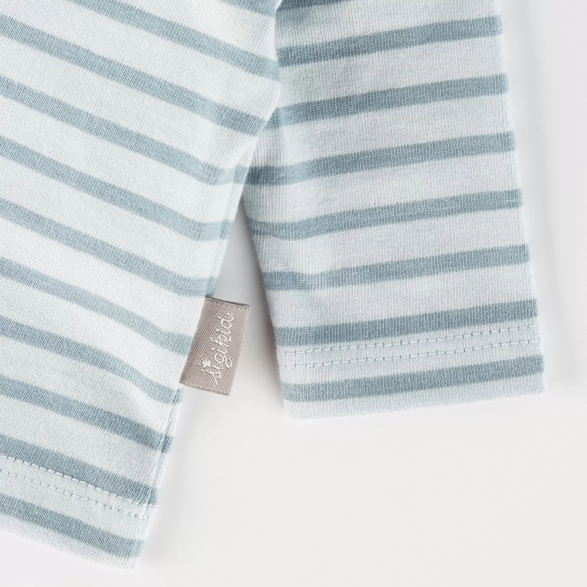 Süßes Baby Longsleeve Blau Geringelt Für Einen Kleinen Bärchenprinzen. Bei Der Mode Für Unsere Jüngsten Haben Wir Auf Jeder Schulter Zwei Druckknöpfchen Vorgesehen; So Kann Man Es Ganz Jungen Babys Leichter Überstreifen Und Es Bleibt Mehr Zeit Zum Kuscheln. Das Material Für Dieses Babyshirt Ist Feiner Singlejersey Aus Bio-Baumwolle.