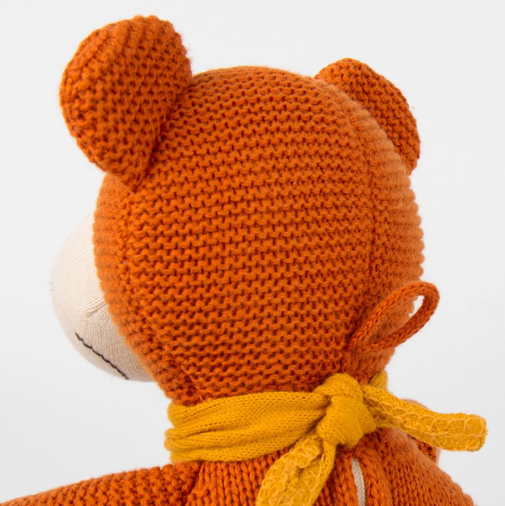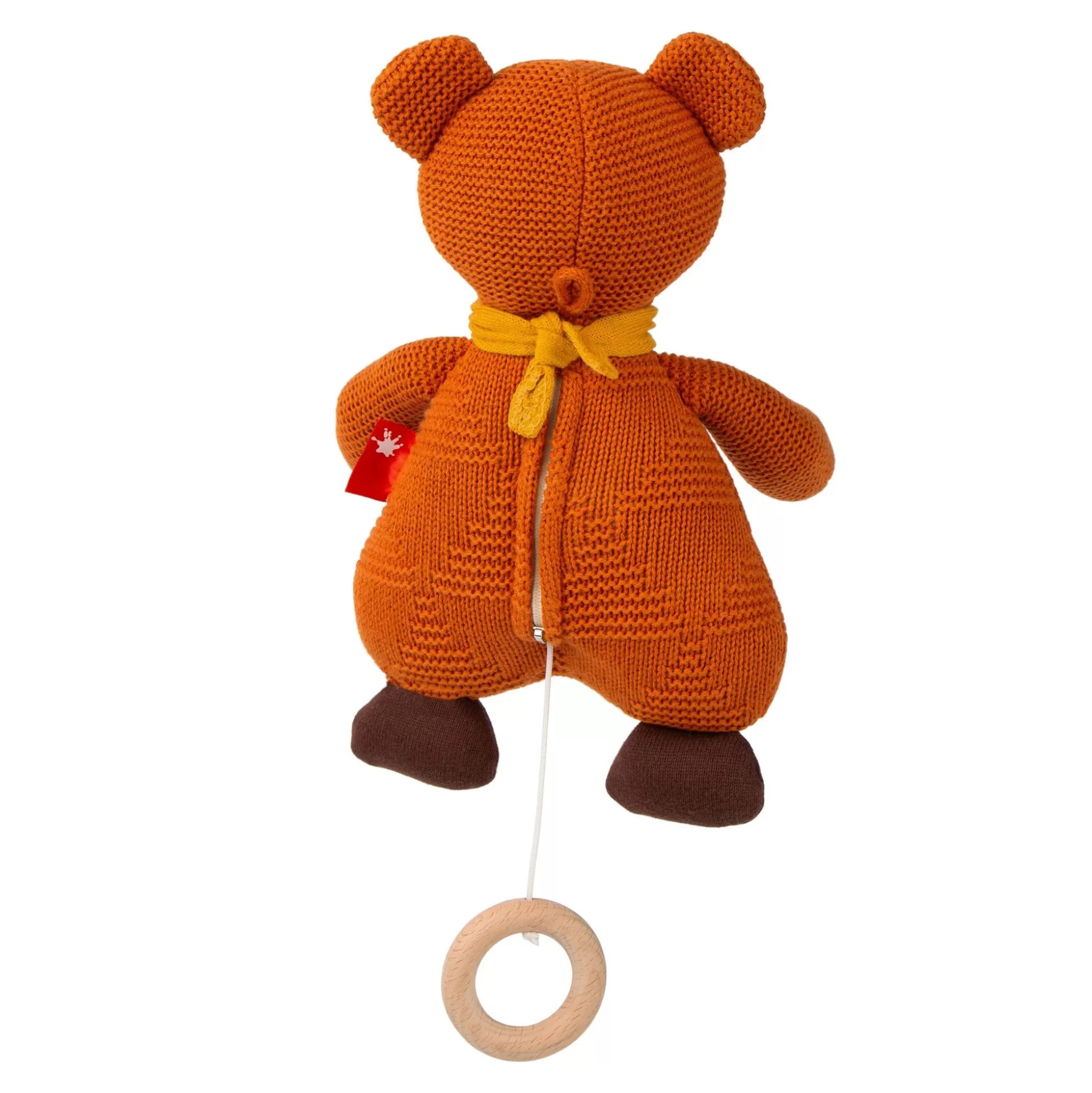 Als Wäre Er Mit Viel Liebe Und Zeit Von Hand Gestrickt – Den Ganzen Charme Dieser Bären Spieluhr Entdeckt Man Beim Genaueren Hinsehen. Der Hübsche Teddy Ist Komplett Aus Reiner Baumwolle Gestrickt, Sogar Nasenspitze Und Halstuch. Nur Der Schnitt, Unterschiedliche Farben Und Strickarten Gestalten Und Formen Das Braune Bärchen. Der Buchenholzring Zieht Das Spielwerk Auf Und Lässt Sich Auch Beknabbern. Ein Ganz Besonderer Begleiter Für Babys Träume!