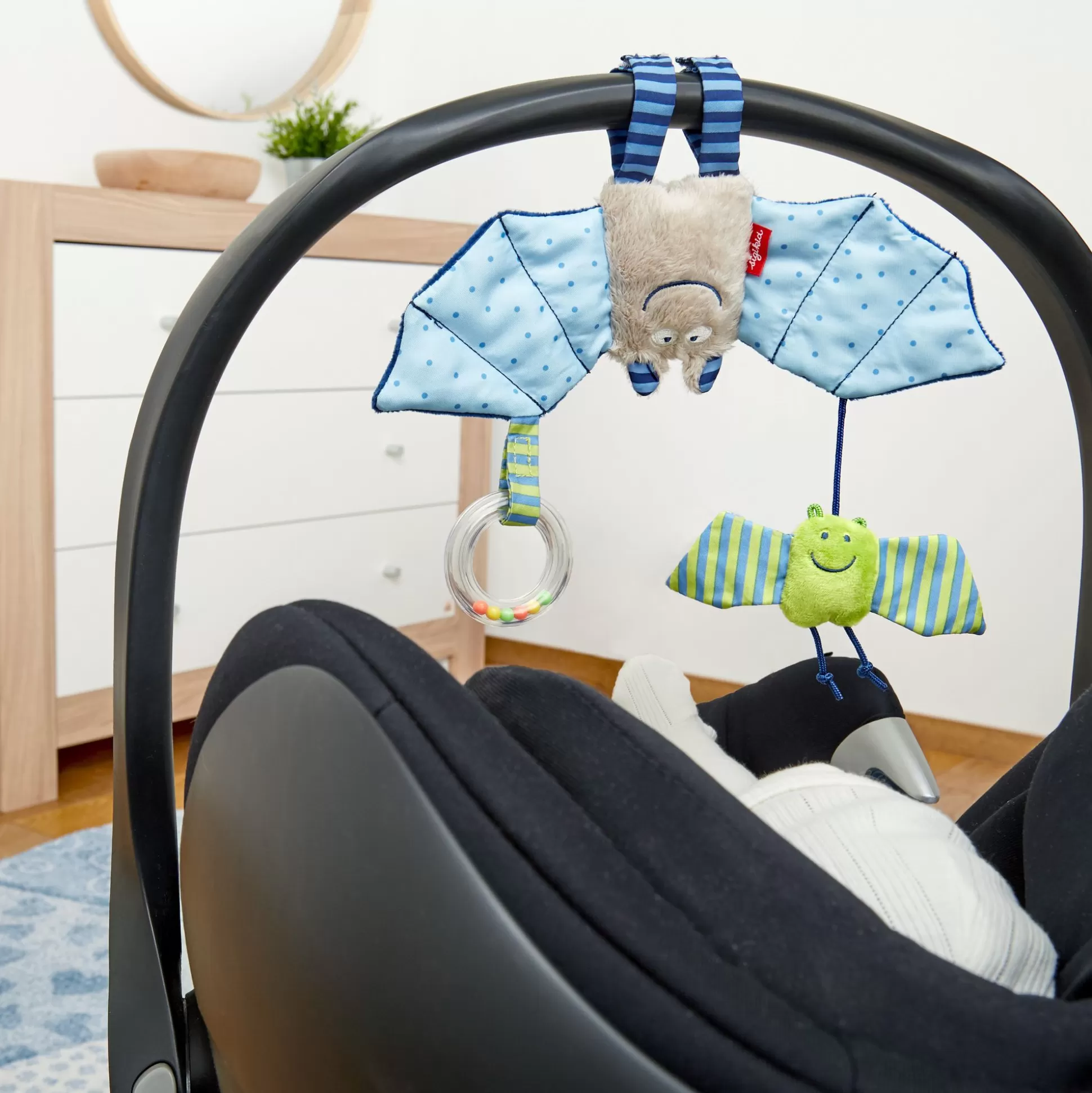 Der Greifling Fledermaus Stellt Babys Kleine Welt Gehörig Auf Den Kopf. Ganz Niedlich Und Weich Ist Der Anhänger Für Die Babyschale Und Verspricht Jede Menge Spaß Beim Ersten Greifen, Fühlen Und Entdecken. Mit Rassel-Greifring, Knisterfolie In Der Kleinen Und Quietsche In Der Großen Fledermaus Ein Tolles Babygeschenk, Das Nie Langweilig Wird. Das Freundliche Design Und Die Hochwertige Verarbeitung Sprechen Kinder Und Eltern Gleichermaßen An.